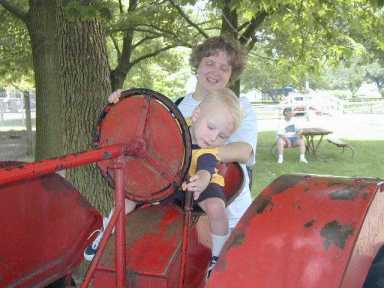Riding the antique tractor with Mom supervising