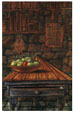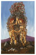 The organization of the following table will be discussed in detail below, but briefly, the columns show trumps in the same world or realm, and the rows show trumps in the same position on the tree within their realm or world. The Lunar World of the standard Tarot is akin to the Dreampower Stone Realm, the Solar to the Pearl, and the Stellar to the Whirlpool. Dreampower trumps are correlated with ordinary Tarot trumps according the "basic direct cross-reference" as listed in Appendix 3 of The Dreampower Tarot. There are also additional subtle connections to other standard trumps for most of the Dreampower major cards which are not shown here. (Ordinary trumps are illustrated with images from the Alleged Tarot.)